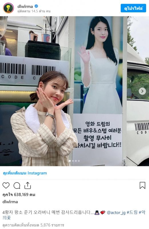 ภาพที่ไอยูลง เป็นภาพเธอหน้ารถบรรทุกกาแฟและขนมที่ อีจุนกิ จัดเตรียมส่งมาให้ที่กองถ่ายภาพยนตร์เรื่อง Dream พร้อมกับป้ายธงข้างรถแปลได้ว่า